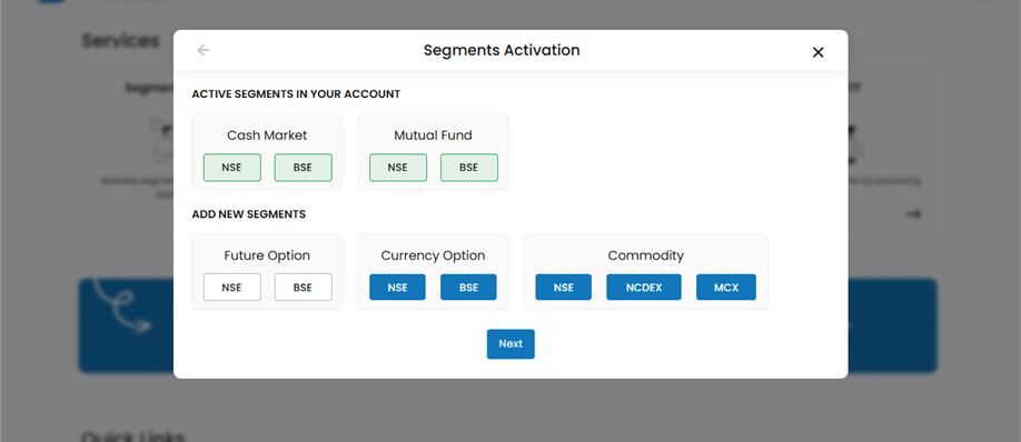 - Steps for Individual Account Holder: Online Method · Customer may login to Single Point through https://sp.mastertrust.co.in/login and click on “Segment Activation” option as displayed in below screenshot. · Post clicking this option, you will find ...